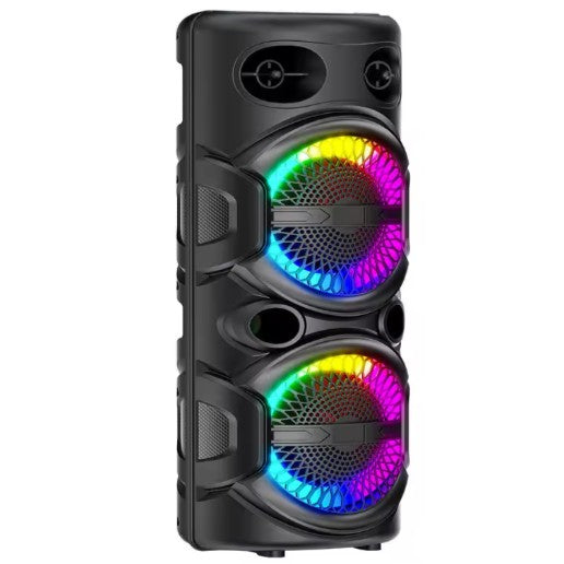 Colorful RGB Lights: Our Bluetooth karaoke speaker comes with two large disc-like RGB lights that change color and shape as music plays. It will arouse kids' interest and distract their attention from videos & games. Dynamic lights also let you feel energized and relaxed.